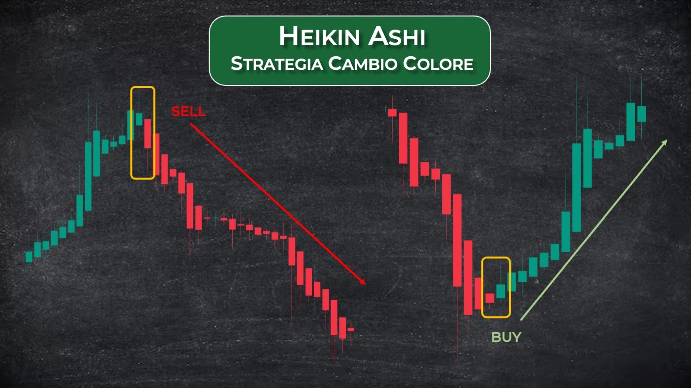 Una strategia semplice e intuitiva basata sul cambio colore delle Heikin Ashi, con esempi pratici e applicazione reale sui grafici.